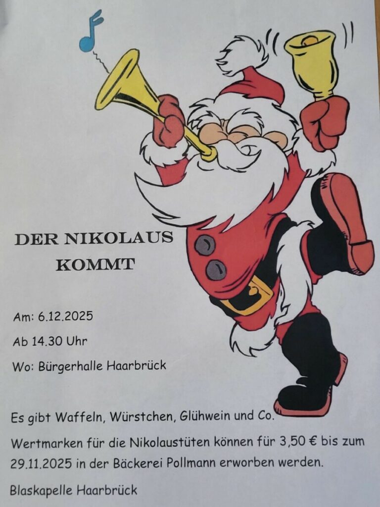 Auch in diesem Jahr hat der Nikolaus die Einladung der Blaskapelle mit Freude vernommen und sein Kommen zugesagt.