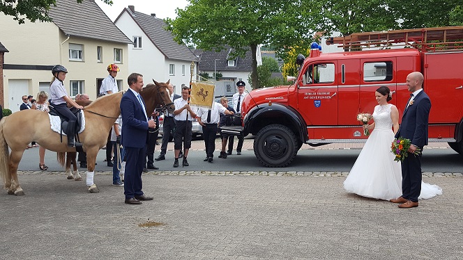Im Jahre 1985 wurde die Standarte des Reitvereins feierlich an einem Sonntag in der Gemeinde eingeweiht und bekam vom örtlichen Pastor den kirchlichen Segen. Nun nahm man an den zwei Prozessionen teil, dieses waren die Fronleichnamsprozession und die zu Bartholomäus. Ein Reiter trug die Standarte und zwei weitere begleiteten ihn in ihren Ausrüstungen zu. Später wollte man die Standarte nicht mehr tragen und sie zu Pferd präsentieren. Dies war aber wegen der Pferdeäpfel und aus versicherungstechnischen Gründen nicht möglich und so beschloss man nicht mehr an den Prozessionen teilzunehmen.
